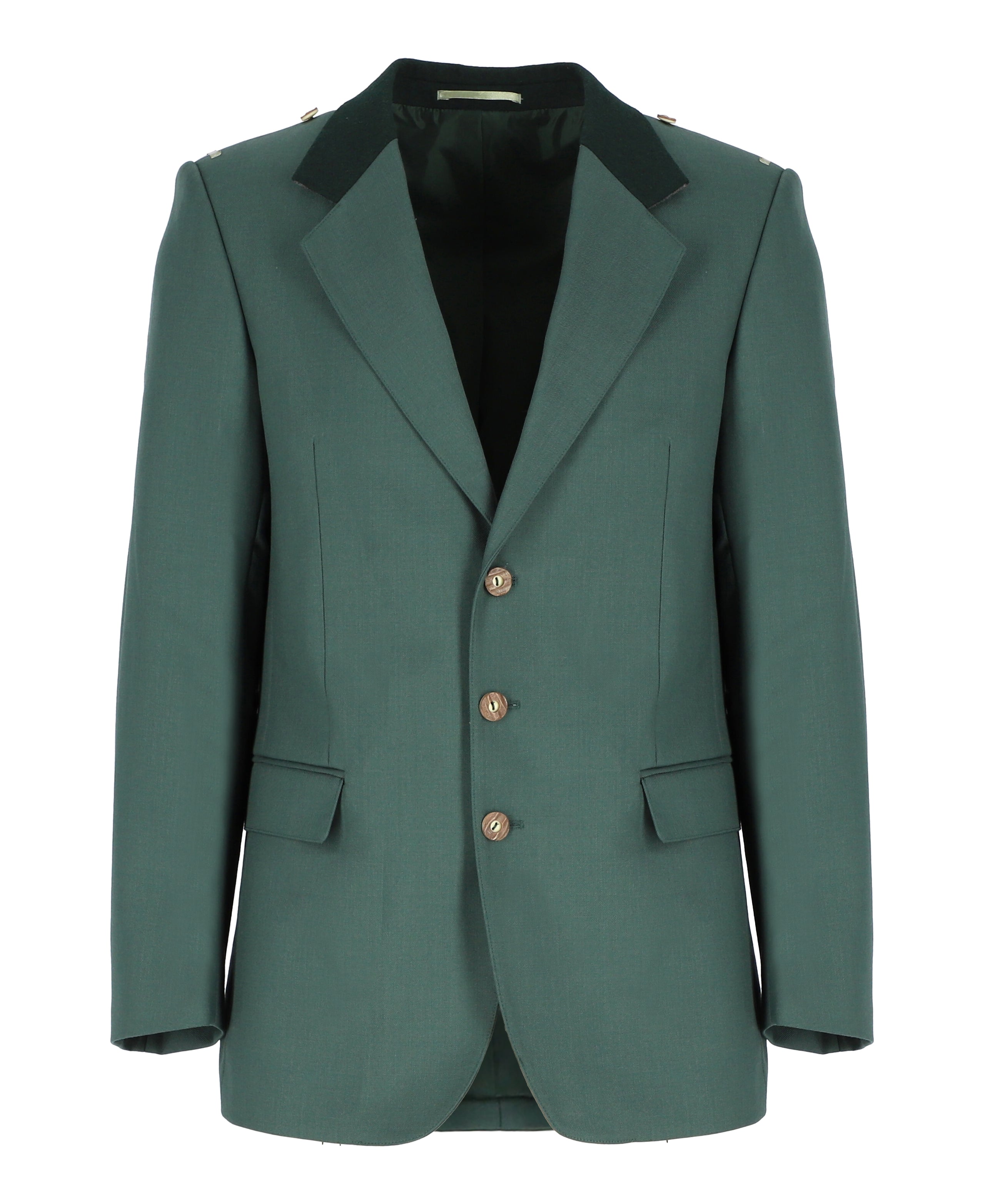 Das Sakko klassischen Jagdgrün orientiert sich am klassischen Schützenstil, bleibt aber in Farbe und Form bewusst neutral und modern. Der Schnitt ist leicht tailliert und sorgt für einen ordentlichen Sitz. Der samtbesetzte Kragen und die Knöpfe aus Hornoptik setzen dezente, traditionelle Akzente, ohne überladen zu wirken. Das Material ist formstabil und auf lange Tragedauer ausgelegt.